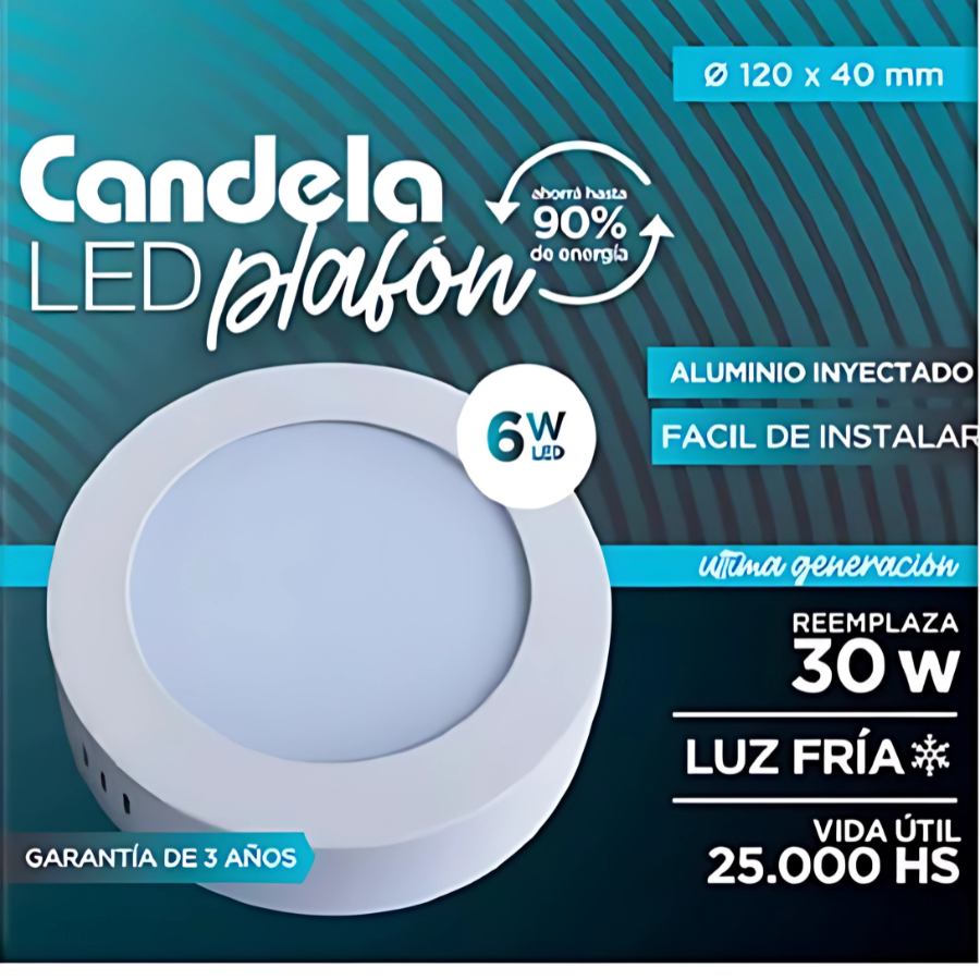 LED PLAFON REDONDO BASE. 6W FRIA CANDELA