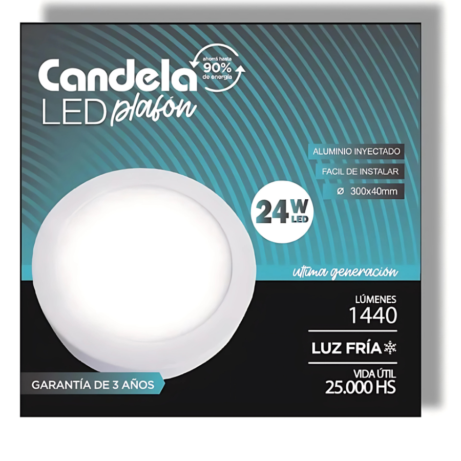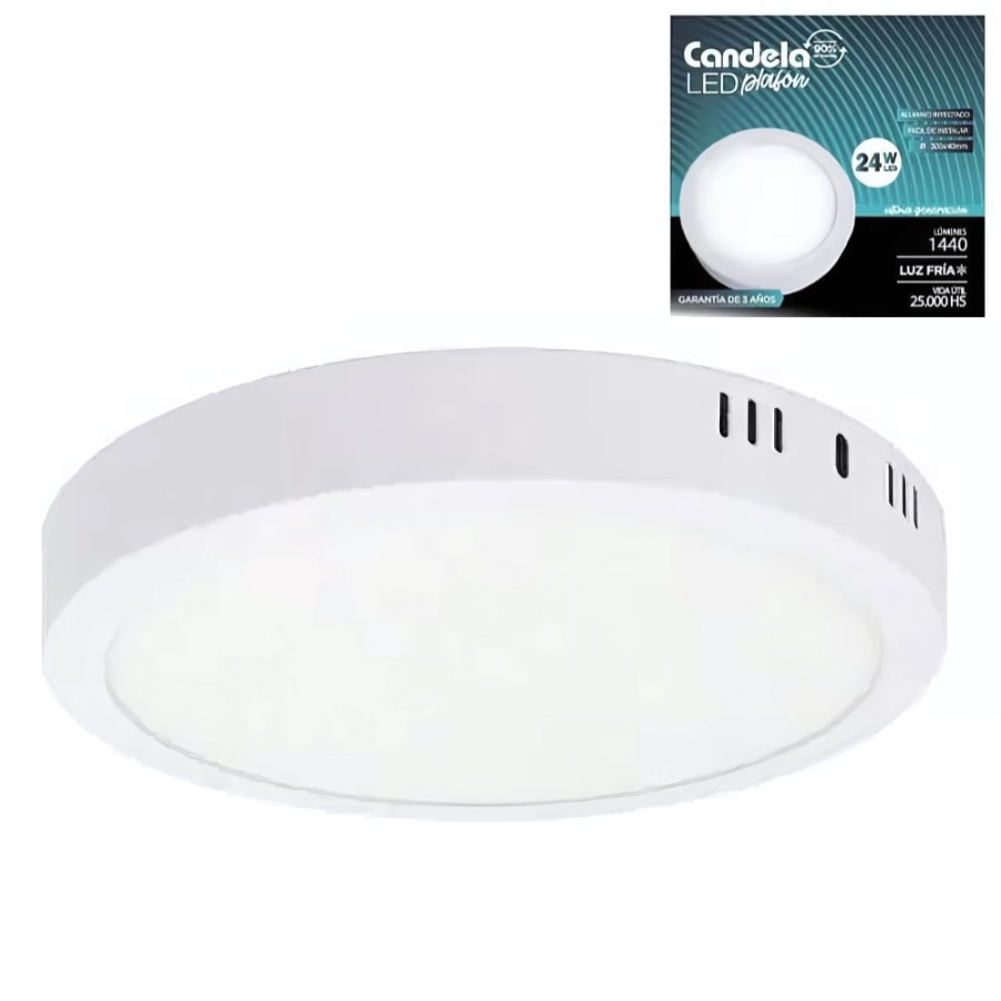 LED PLAFON REDONDO BASE 24W FRIA CANDELA