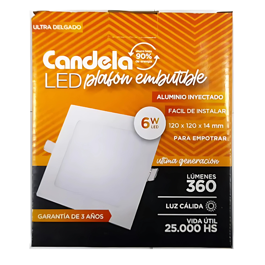 LED PLAFON CUADRADO EMB. 6W CALIDO (B/20)