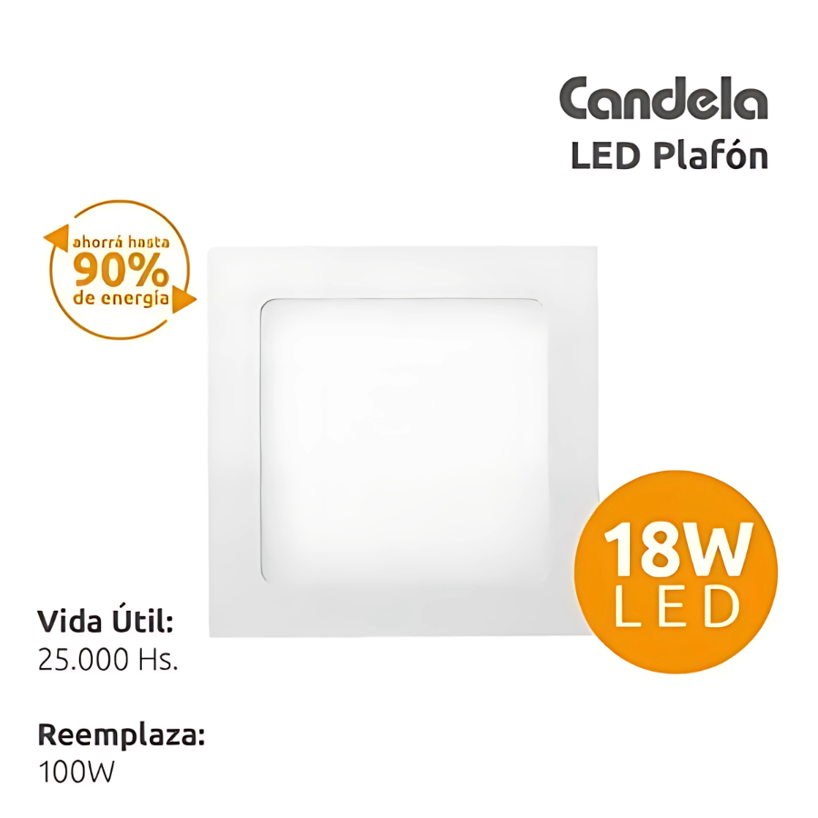 LED PLAFON CUADRADO BASE. 18W CALIDO (B/20)