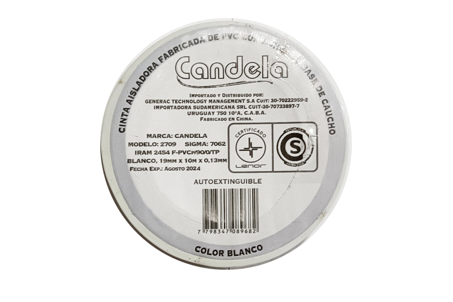 CINTA AISLADORA BLANCO 10 MTS. CANDELA (B/200)