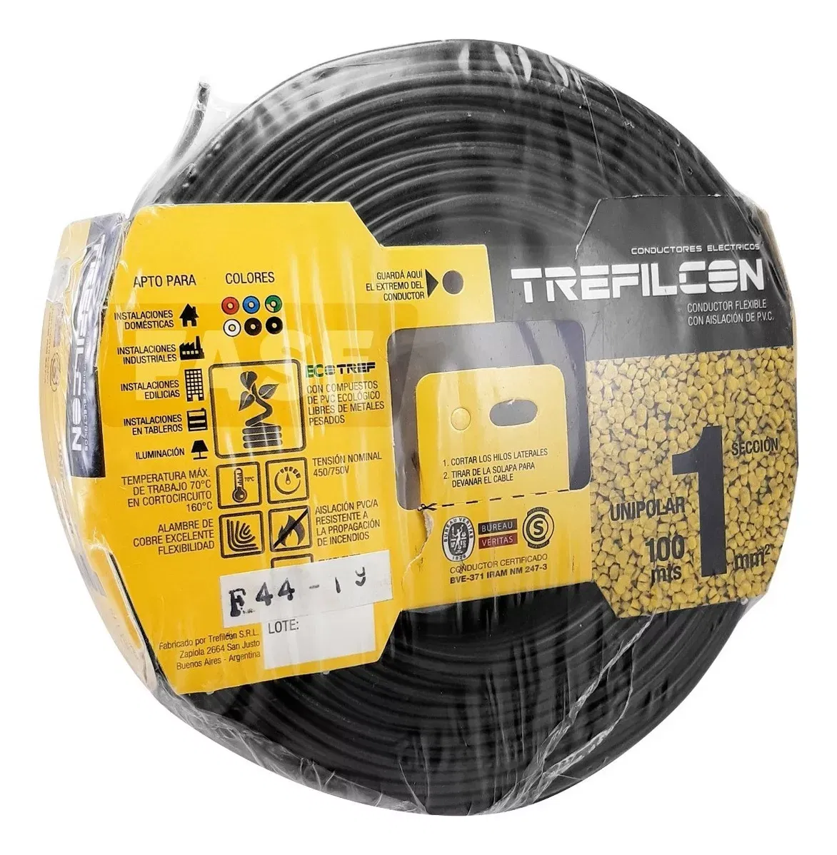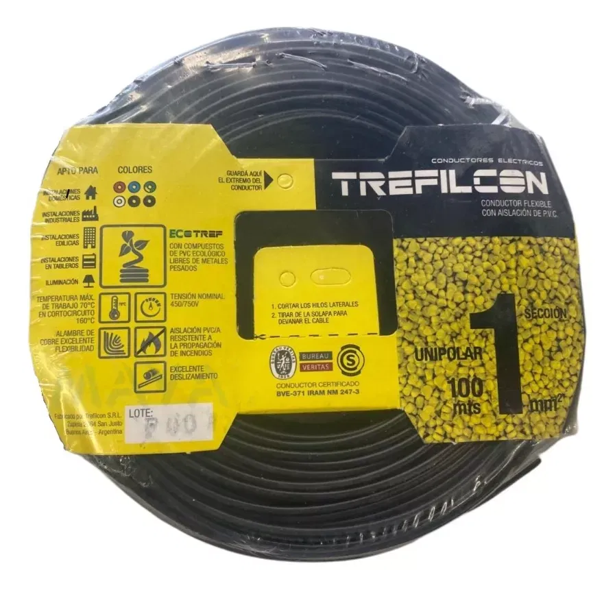 CABLE 1X1.00MM X MTS NEGRO TREFILCON