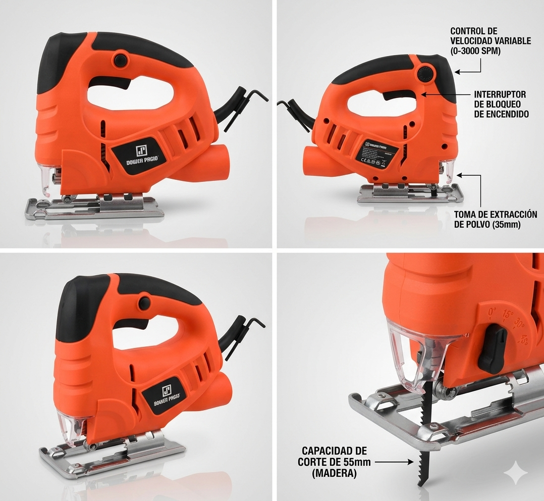 - Limpieza: Incluye una salida posterior diseñada para la extracción de polvo, manteniendo el área de trabajo despejada.