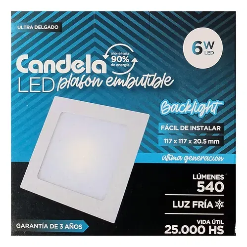 LED PLAFON PVC CUAD. EMB. 6W FRIA CANDELA