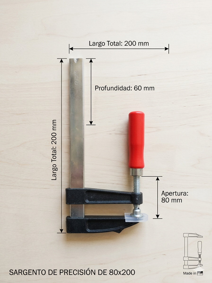Capacidad de Apertura (80 mm): Es el espacio máximo entre las mordazas donde colocas las piezas a sujetar.