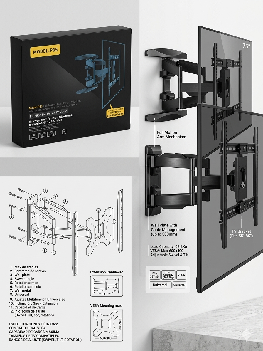 • Compatibilidad: Diseñado para pantallas de 55" a 85".